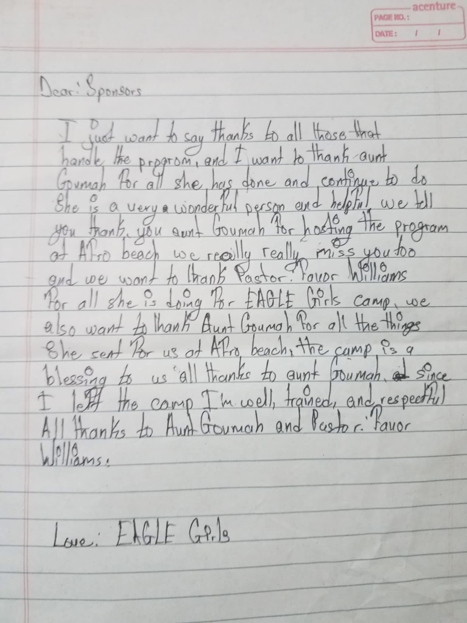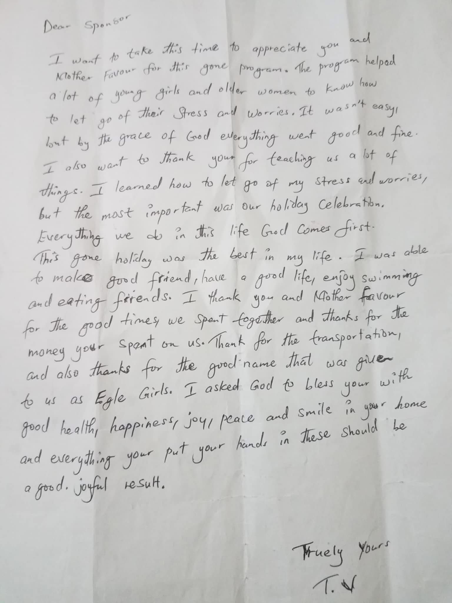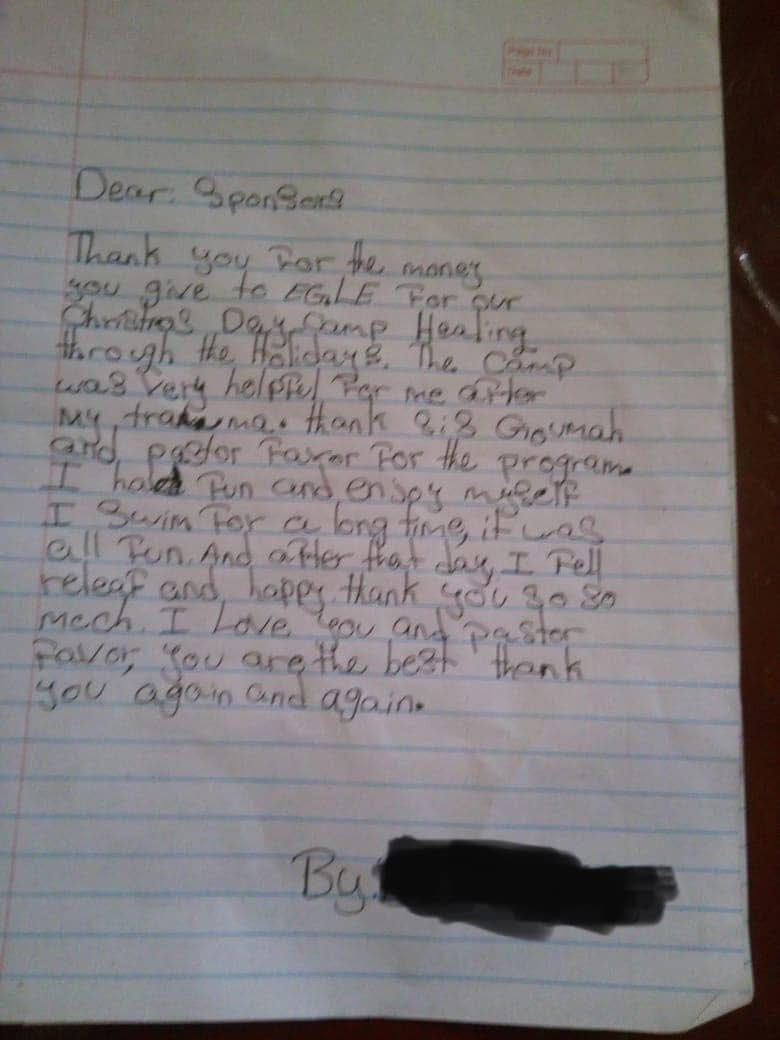 As you read the handwritten notes from our girls, please offer grace for the spellings. Many of our girls are just receiving the opportunity to enter better schools. That is something that we have also been working on. We currently pay tuition for 5 students. We welcome sponsorship for more EGLE girls. Please inbox us if you are willing to help in that area. We will put you in touch with the schools.